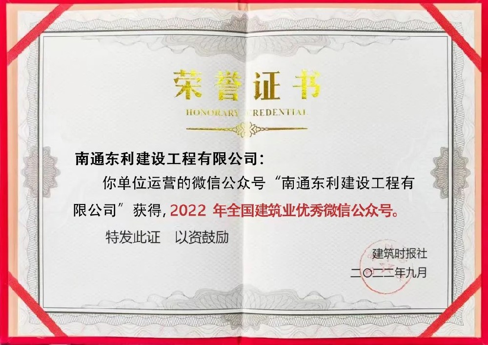 喜报 | 东利建设获评“2022年全国建筑业优秀微信公众号”称号