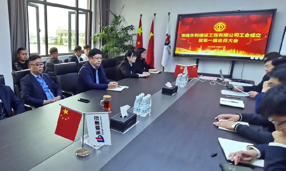 2020年10月27日,南通东利建设工程有限公司工会成立暨第一届会员大会顺利召开。公司党支部书记、董事长陆亚俊,副总经理叶锋出席会议。 大会在庄严的《国歌》声中拉开序幕,工会筹备组组长宣读了《关于同意成立南通东利建设工程有限公司工会的批复》。大会听取并通过了《南通东利建设工程有限公司